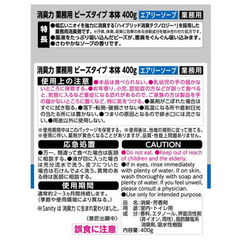 エステー 消臭力業務用ビーズ本体 400g ソープ 13025 13025