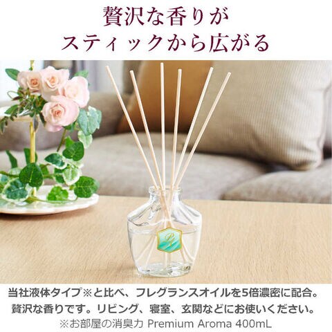 ●メーカー液体タイプ※と比べ、フレグランスオイルを5倍濃密に配合。贅沢な香りです。※お部屋の消臭力 Premium Aroma 400mL