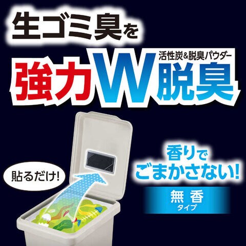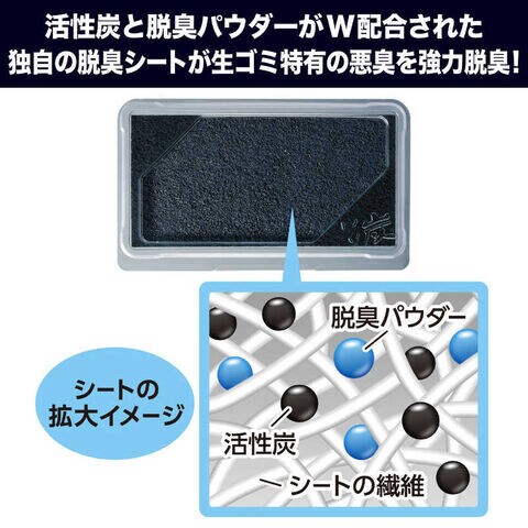 ●活性炭と脱臭パウダーのWの効果で生ゴミ臭を 強力脱臭!