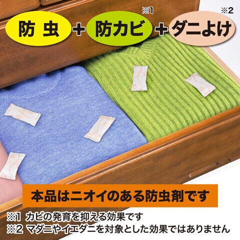 ●特殊和紙包装の全面から広がった防虫成分が効果を発揮し、大切な衣類を守ります。