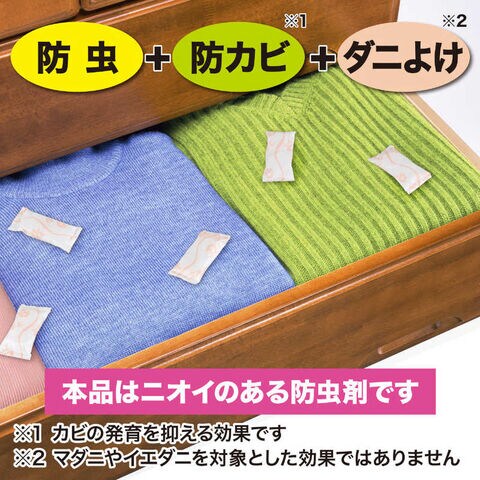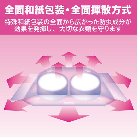 ●特殊和紙包装の全面から広がった防虫成分が効果を発揮し、大切な衣類を守ります。