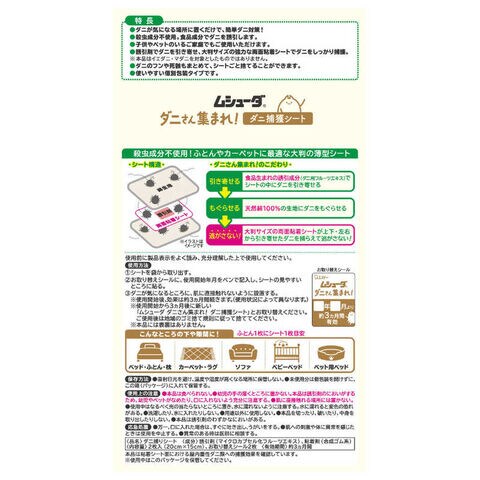 ●誘引剤でダニを引き寄せ、 大判サイズの強力な両面粘着シートでダニをしっかり捕獲。