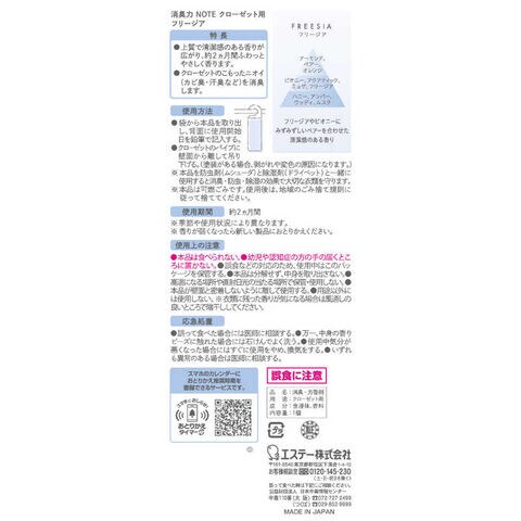 エステー 消臭力NOTEクローゼット用 フリージア