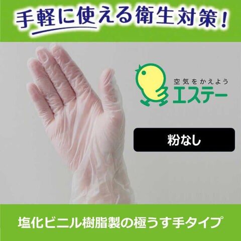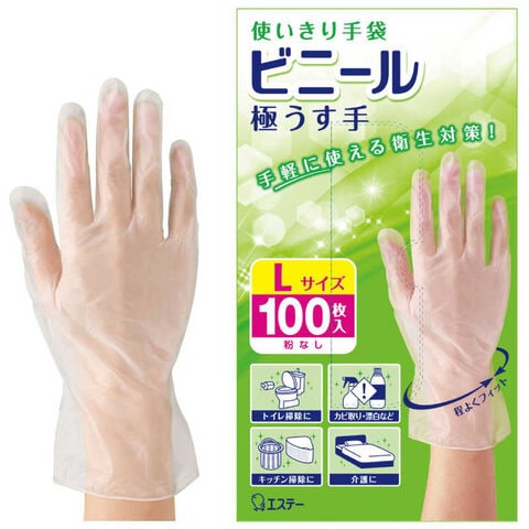 エステー 使いきり手袋 ビニール 極うす手 Lサイズ 半透明 100枚