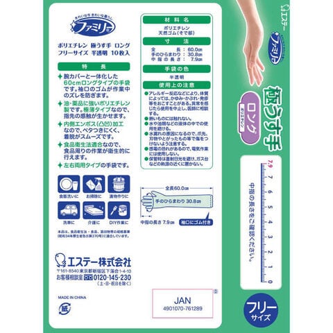 エステー ファミリー ポリエチレン 極うす手 ロング フリーサイズ 半透明 10枚