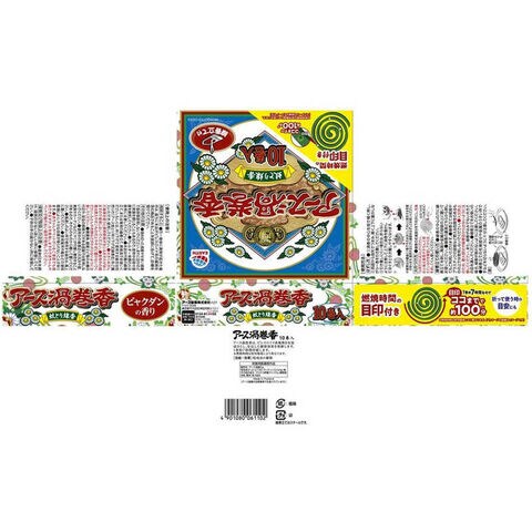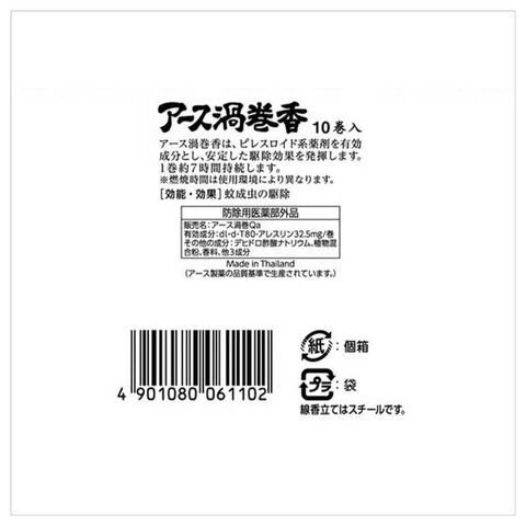 有効成分:dl・d-T80-アレスリン(ピレスロイド系)32.5mg/巻、デヒドロ酢酸ナトリウム、植物混合粉、香料、他3成分