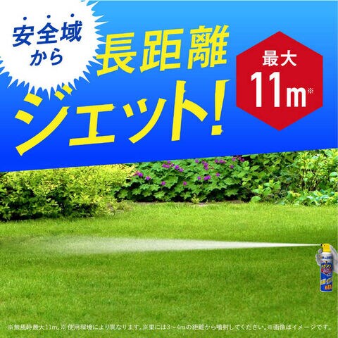 ●無風時最大11m(使用環境により異なります)巣には、3mから4mの距離から噴射してください