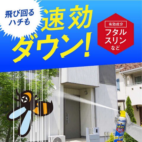 ●速効性、致死効果に優れた有効成分を配合。ハチの巣(蜂の巣)や飛び回る蜂・アブを速効駆除するスプレー