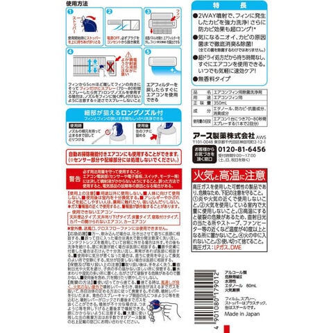 ●2WAY噴射で、フィンに発生したカビを強力洗浄!さらに防カビ効果も超ロング!*1本で叶える防カビ期間、合計6ヵ月!(3ヵ月後に再使用した場合。使用環境により異なります。)
