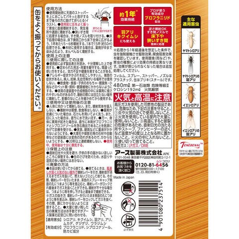 ・使用前に缶をよく振って害虫に直接噴射するか、発生場所や通路に噴射してください