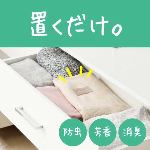 ※衣類への虫食い被害は、卵からかえった幼虫によるものです。本品の防虫効果とは、天然成分100%の防虫成分が収納空間に広がり、衣類に卵を産みつける成虫への殺虫効果のことです。既に収納空間にいる害虫(幼虫)への効果を示すものではありません。