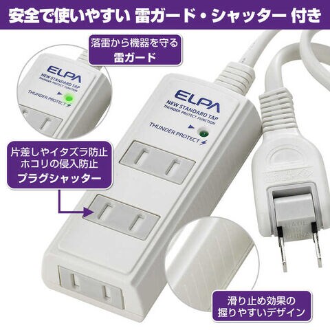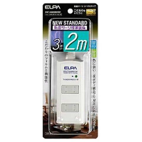 ELPA 耐雷コード付タップ (2P・3個口・2.0m) [WBT3020SBN] WBT-3020SBN(W)