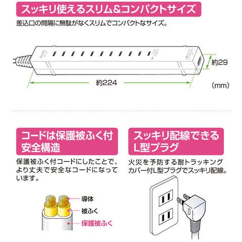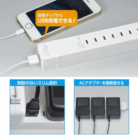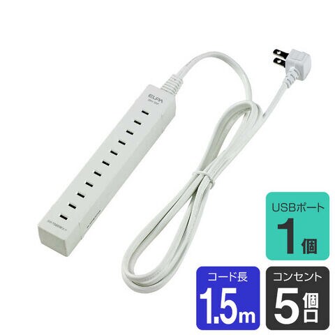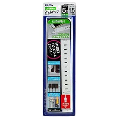 ELPA スリムタップ ホワイト [1.5m /5個口 /スイッチ無 /1ポート] [WLUSB5015BW] WL-USB5015B(W)