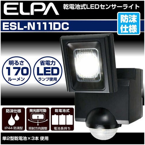 ELPA 屋外用LEDセンサーライト 乾電池式 1灯 [ESLN111DC] ESL-N111DC [白色 /乾電池式]