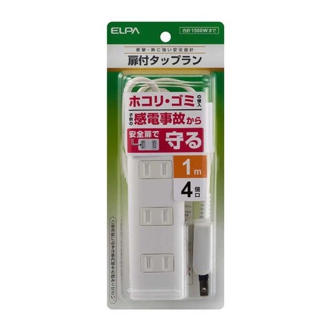ELPA 扉付タップラン4個口 1m [1.0m /4個口 /スイッチ無] [WBTN4010BW] WBT-N4010B(W)