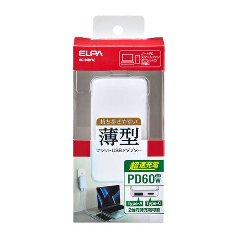 ELPA フラットUSBアダプター ホワイト UC-26B-W