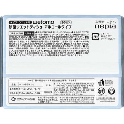 ネピア nepia ネピア wetomo 除菌ウエットティシュ アルコールタイプ 50枚入り