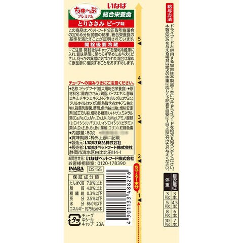 いなばペットフード ちゅ~ぶプレミアム 総合栄養食 とりささみ ビーフ味 80g