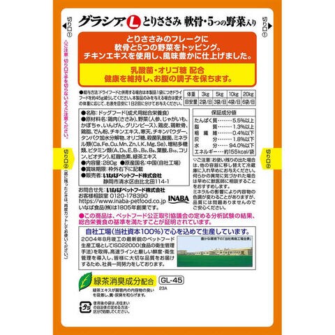 いなばペットフード グラシアL とりささみ 軟骨・5つの野菜入り 280g