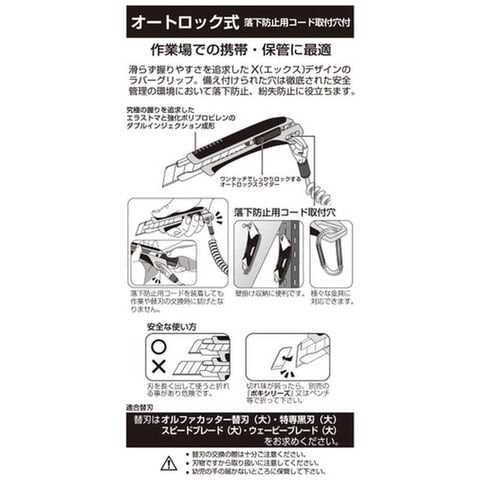 ●ワンタッチで刃が出せ、しっかりロックできるオートロック式です。