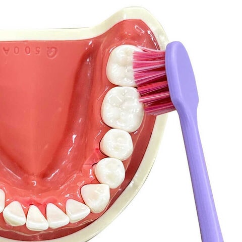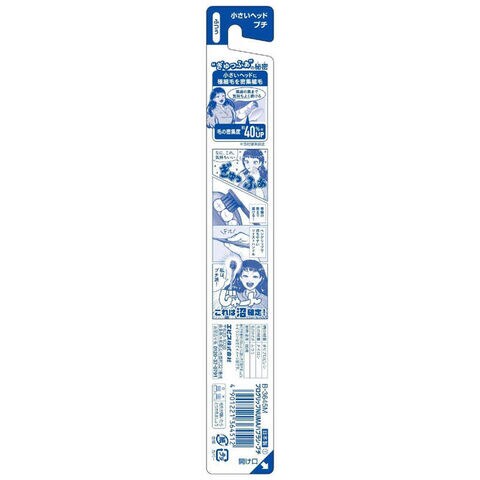 ●「ぎゅっふぁ」の秘密は、極細毛の密集植毛。やわらかいのに弾力のある磨き心地を実現。さらに超薄型&超コンパクトヘッドで奥歯の奥まで届いて気持ちいい。小さいヘッドのプチ。