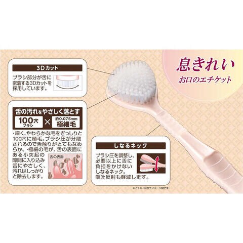 なめらかな舌触りの極細ブラシが舌にやさしく汚れはしっかり除去。