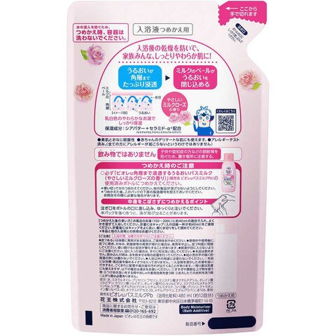 花王 Biore ビオレu すべすべバスミルク つめかえ用 (480mL) ミルクローズの香り