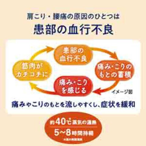 蒸気の出る温熱シート。慢性の肩こり・腰痛をじっくりほぐす。効能効果: 温熱効果一般医療機器