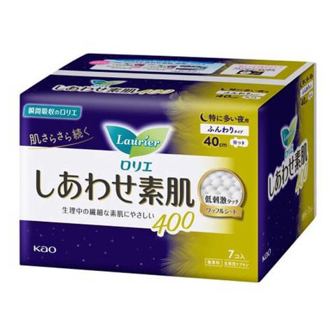 花王 Laurier(ロリエ) しあわせ素肌 特に多い夜用 羽つき 7コ入〔サニタリー用品(生理用品) 〕 白