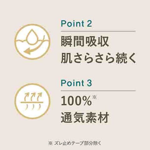 吸っても吸ってもつけたての「ふわさら感」続く吸収シート採用。肌へのやさしさプレミアム。医薬部外品。