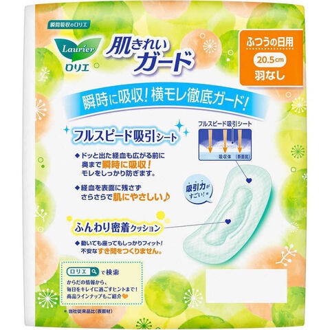 花王 ロリエ 肌キレイガード 昼用 羽なし 28個入り グリーン