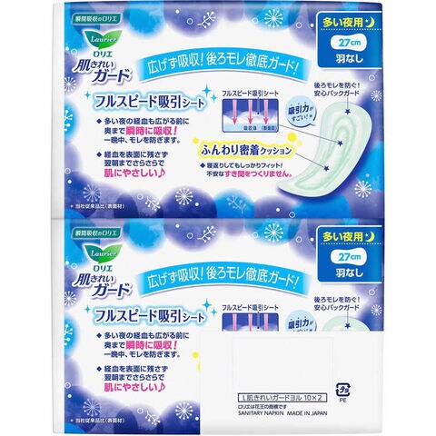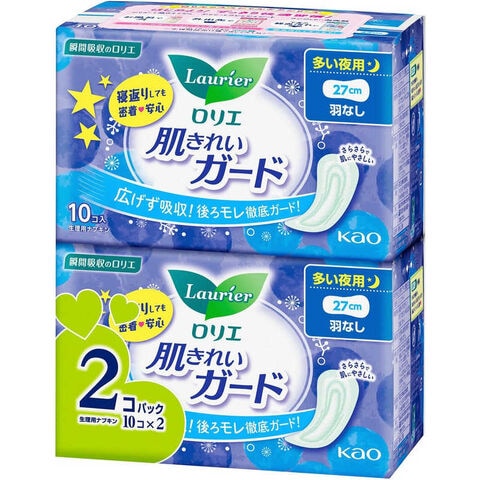 花王 ロリエ 肌キレイガード 夜用 羽なし 10個入り×2個パック グリーン