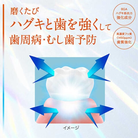 歯質強化成分の高濃度フッ素が歯の抵抗力を高めて、むし歯予防。