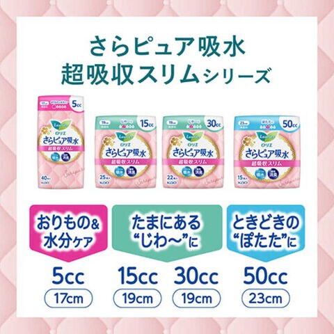 もしもの時も安心、「女性のおまもり」さらピュア吸水から、しっかり吸収!頼れる超吸収スリム。