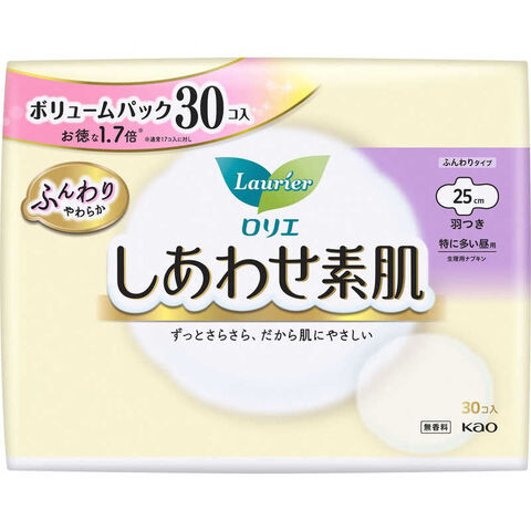 花王 Laurier(ロリエ) しあわせ素肌 ボリュームパック 特に多い昼用 25cm 羽つき 無香料 30個