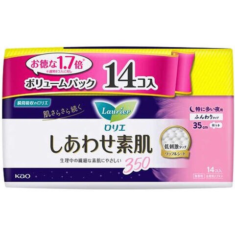 花王 Laurier(ロリエ) しあわせ素肌 ボリュームパック 特に多い夜用 35cm 羽つき 無香料 14個