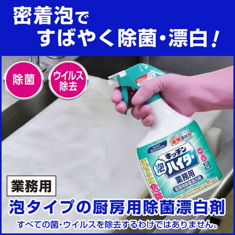 業務用キッチンハイター内最強漂白力!濃密泡がしっかり密着、希釈不要のスプレータイプ。