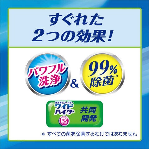 つけおきすればごしごし洗いなしで、お手軽キレイ!ワイドハイターEXパワー共同開発。