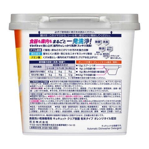 花王 食器洗い乾燥機専用 キュキュットクリア除菌 粉末タイプ オレンジオイル配合 本体