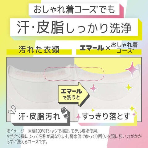 ハリ感チャージ成分2倍配合!ヘビロテTシャツ・ニットも洗うたびシワ・カタチ回復!お気に入り服がキレイに長く着られる、洗たく用洗剤(おしゃれ着用)。