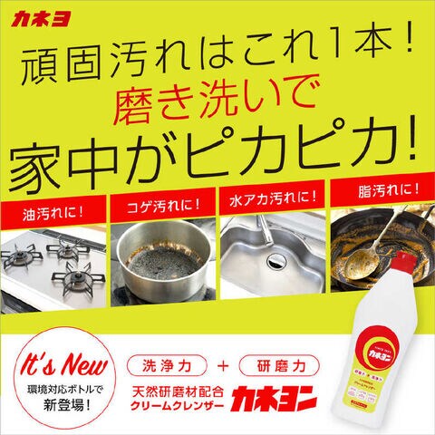 研磨力と洗浄力の相乗効果で、液体洗剤では落ちにくい油汚れやガンコな焦げ汚れなどをしっかり落とすお台所の必需品です。