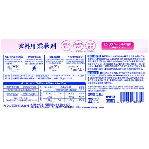 カネヨ石鹸 衣料用柔軟剤ピンクフローラルの香り2.5kg