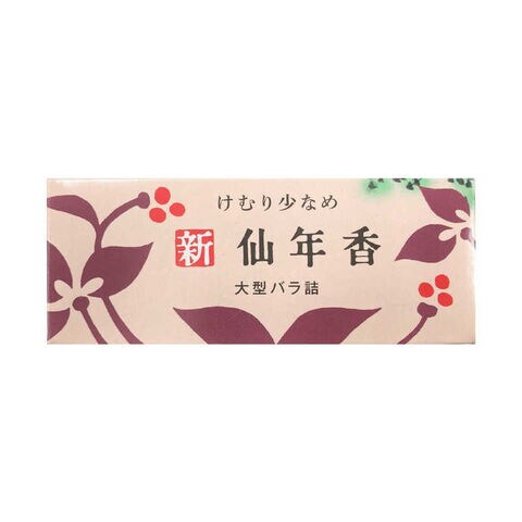 百年以上の歴史を持つ『仙年香』にふさわしい歴史・ブランドを感じていただけるよう、当時の原画デザインを忠実に再現しました。けむり少なめ。大型バラ詰。
