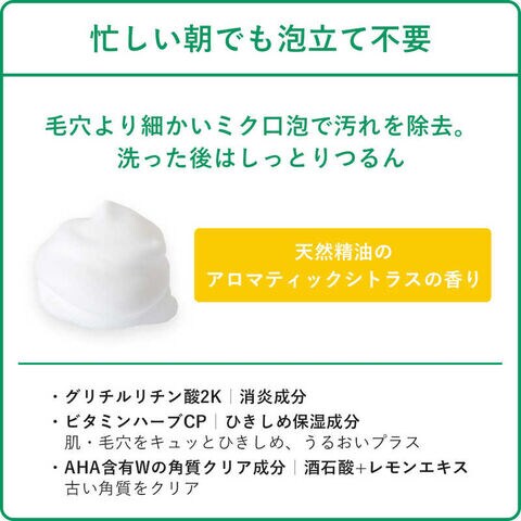 薬用処方で肌あれを予防しながら毛穴汚れや古い角質を落としてつるんと肌へ導く泡洗顔