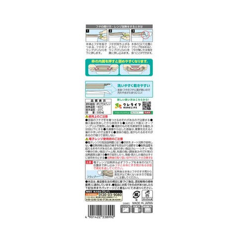 ●フラップを使うことで簡単にフタの開け閉めができ、また、本体にあるくぼみにフラップをセットすると、フタと本体の間に隙間ができ蒸気口になるので、フタごとレンジ加熱が可能となり便利です。