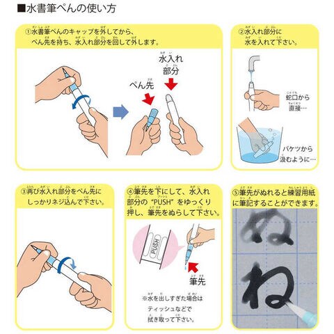 水書用紙専用の水書筆ぺんです。「とめ・はね・はらい」がしやすいようコシのある穂先で、水入れ部分は水道から直接水を入れられるので扱いも簡単。