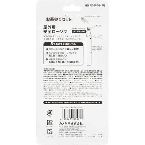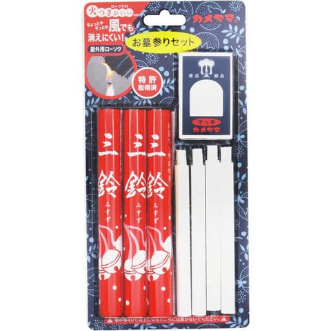 ●風に強く、消えにくいのが特徴の特許取得済みローソク・墓線香・マッチのセット。