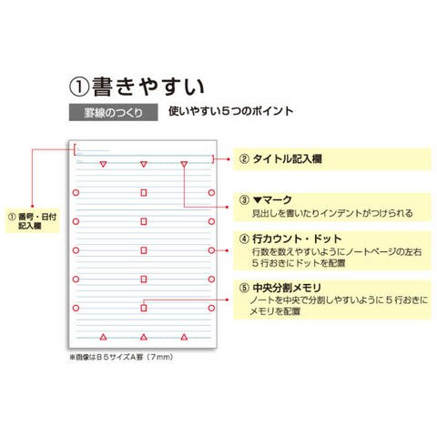 5中央分割メモリ(ノートを中央で分割しやすいように5行おきにメモリを配置)