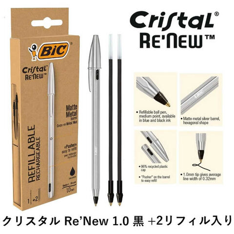 BICジャパン 油性ボールペン クリスタルRENEW 黒 + 2リフィル入り CRBLK3P