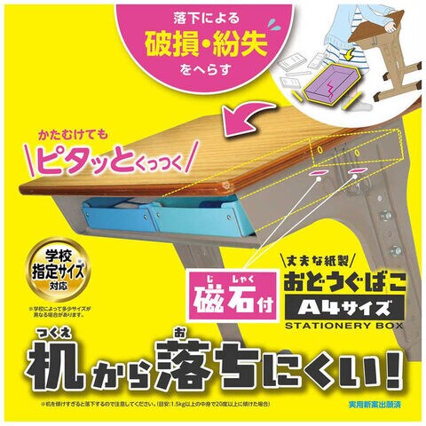 磁石付きで学校机から落ちにくい紙製おどうぐばこ